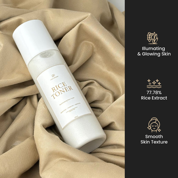 Experience timeless Korean beauty secrets with The Herbal Rice Toner, crafted from 77.78% pure Yeoju rice extract known for its powerful skin-brightening and hydrating properties. This gentle, alcohol-free toner deeply nourishes and refines your skin’s texture, removing impurities and dead skin cells while restoring a soft, radiant glow. Enriched with *gamma oryzanol, **niacinamide*, and natural rice bran extract, it helps fade dark spots, improve uneven tone, and leave your complexion luminous and smooth. Perfect for dull, dry, or tired skin it can even double as a refreshing facial mist for an instant boost of hydration and brightness.